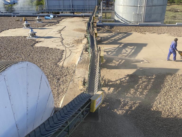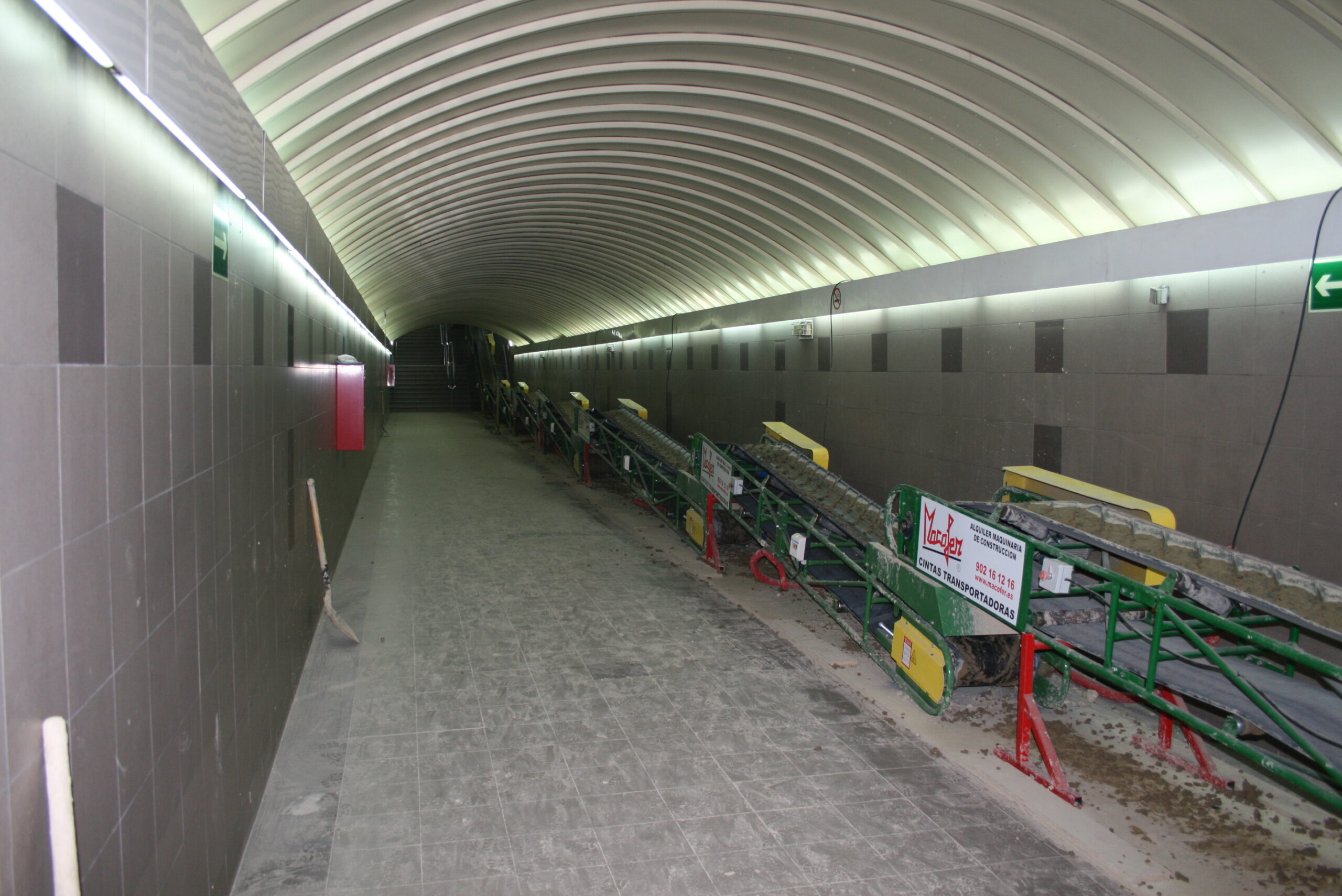 Las cintas descargan el material de una a otra gracias a su disposición ligeramente superpuesta, avanzando hasta la descarga final. Este sistema asegura un flujo continuo de materiales y puede instalarse tanto para recorridos horizontales como para salvar desniveles del terreno.