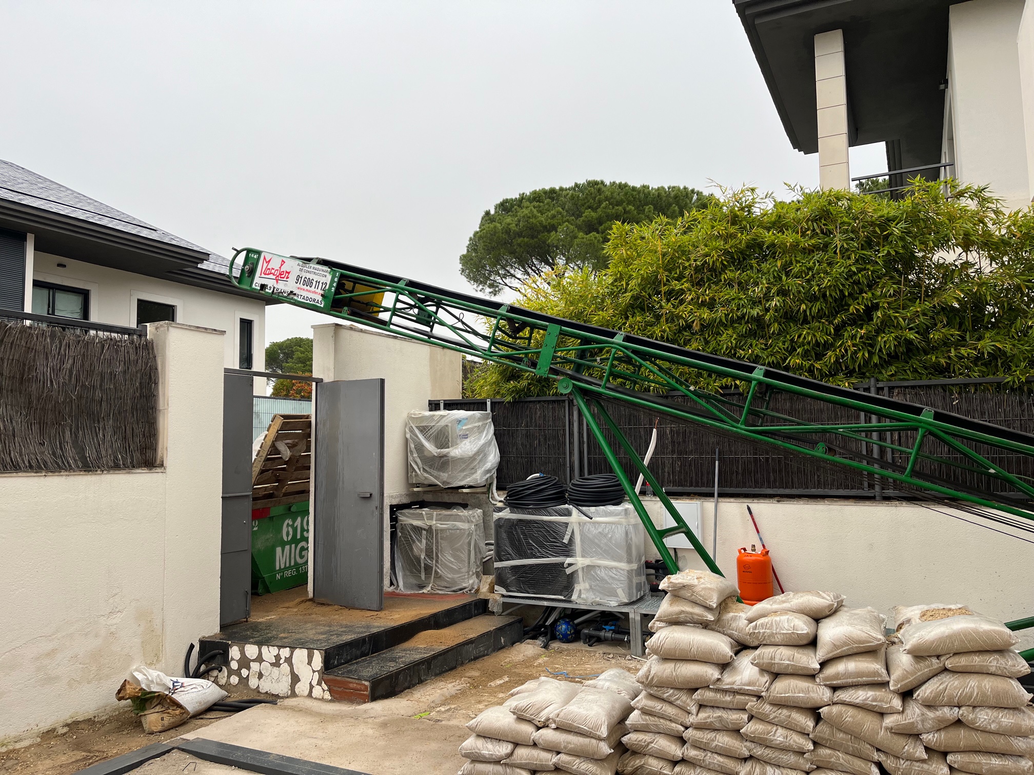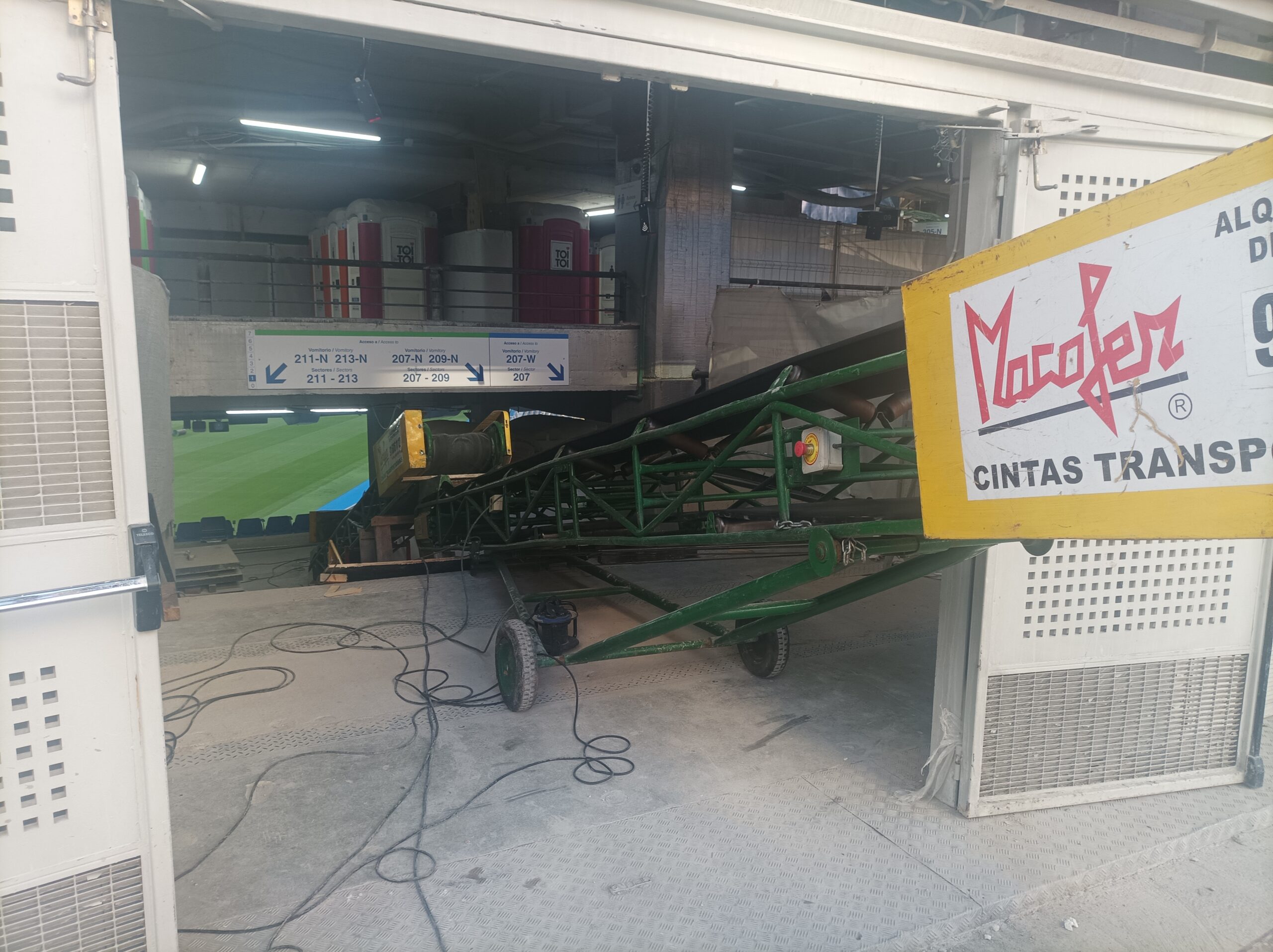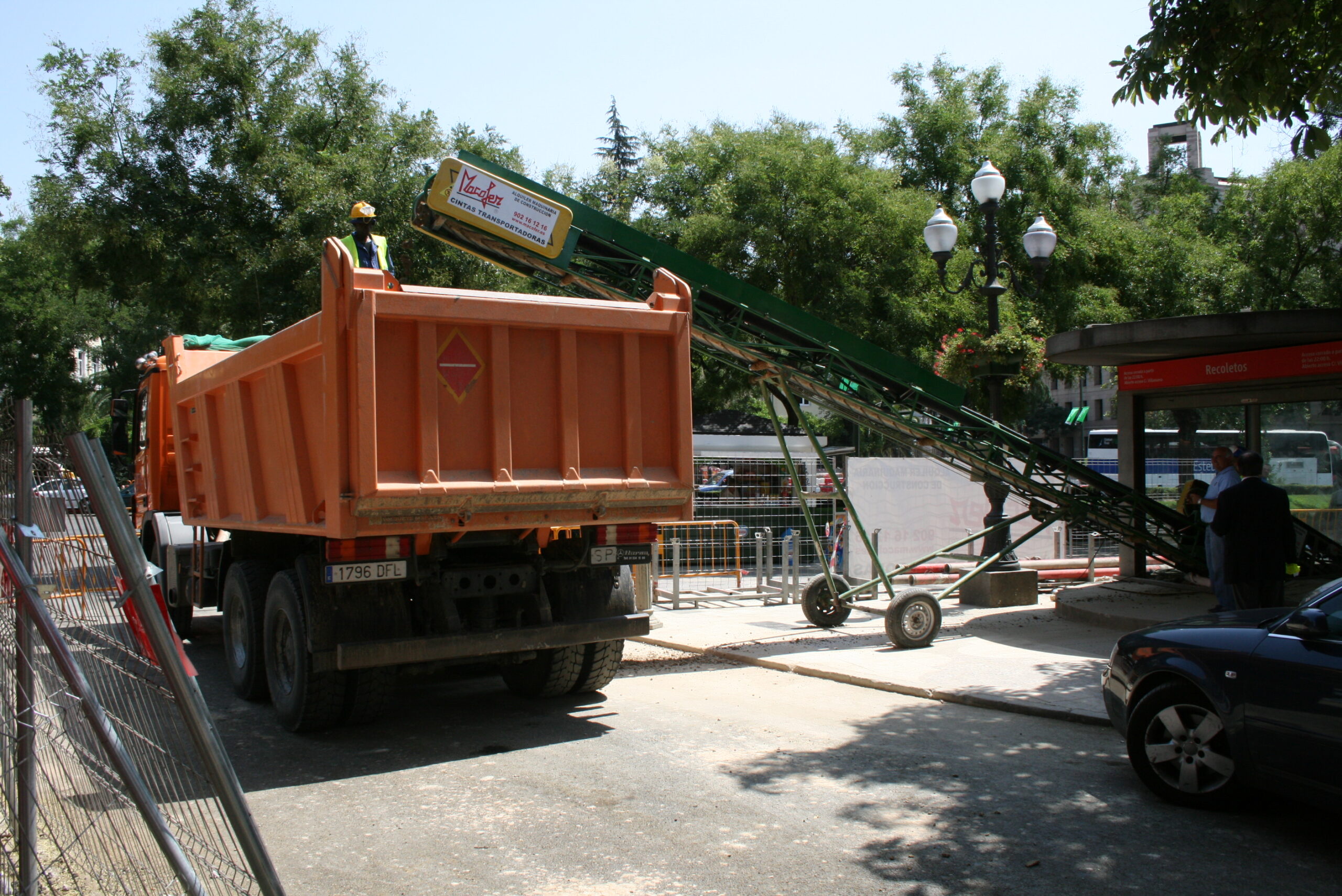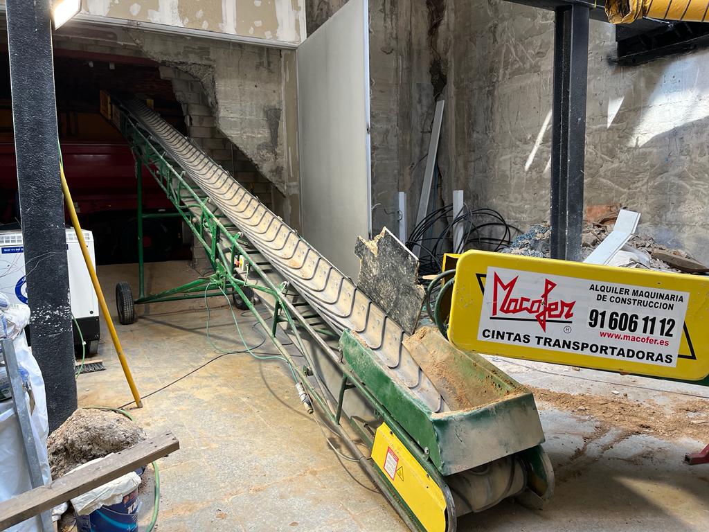 Las cintas portátiles cuentan con un tren de ruedas que se puede elevar o bajar, permitiendo ajustar la altura de forma sencilla mediante un mecanismo manual. Este sistema facilita la adaptación rápida a diferentes condiciones de la obra y alcanza un ángulo máximo de inclinación de entre 30 y 40 grados, dependiendo del tipo de material transportado.