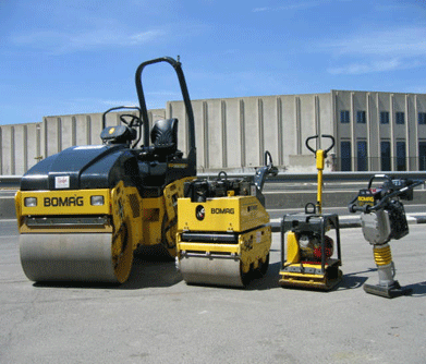 Para compactación disponemos de pisones para zanjas, rodillos de lanza de 700 Kg., rodillos tandem de 2.500 Kg. y bandejas reversibles desde 70 Kg. hasta 200 Kg.